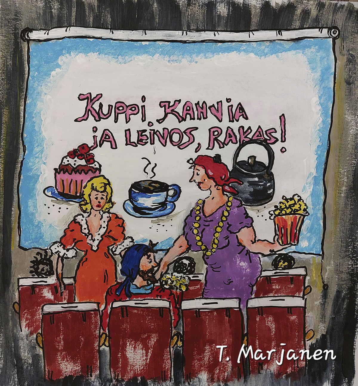 Sanelma huomasi kaupan ilmoitustaululla mainoksen uudesta elokuvasta. ”Kuppi kahvia ja leivos, rakas!” Pelko suuren rakkauden menetyksestä ja uudesta toivosta luki juonikerronnassa.