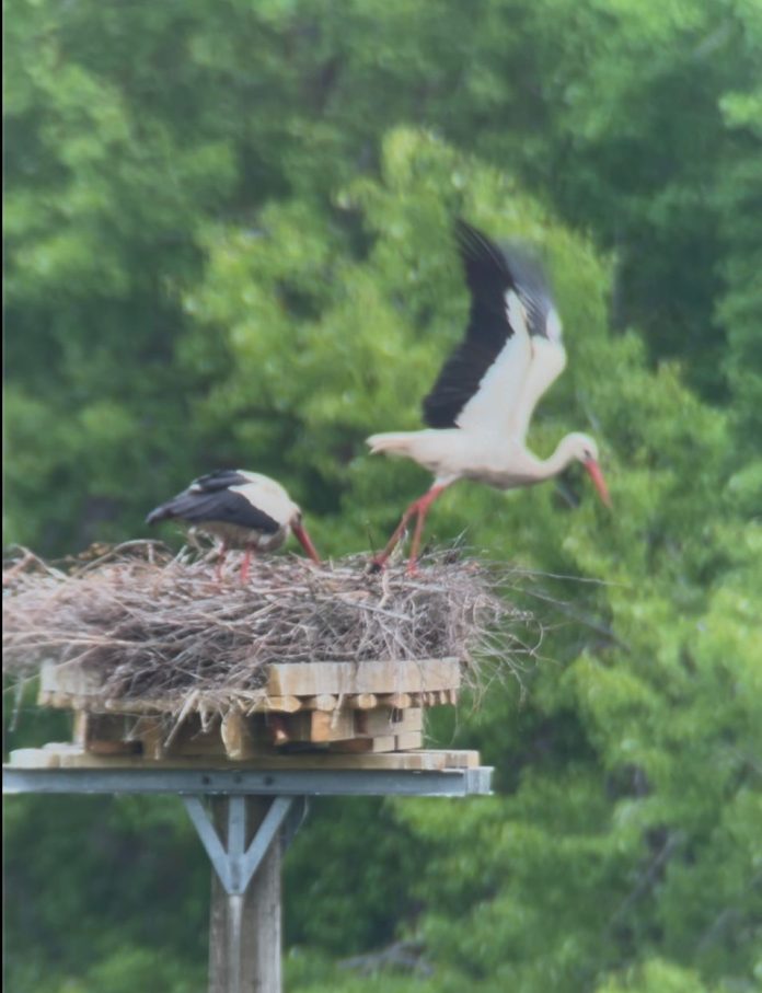 Haikarapariskunta otti korkeaan tolpannokkaan rakennetun keinopesän nopeasti omakseen. Pari yllätettiin rakkauspuuhista pesällään huhtikuun loppupuolella, ja emo muni toukokuussa arvoitukseksi jääneen määrän munia, joista kuoriutui kesäkuun alkupuolella todistettavasti yksi pienokainen.