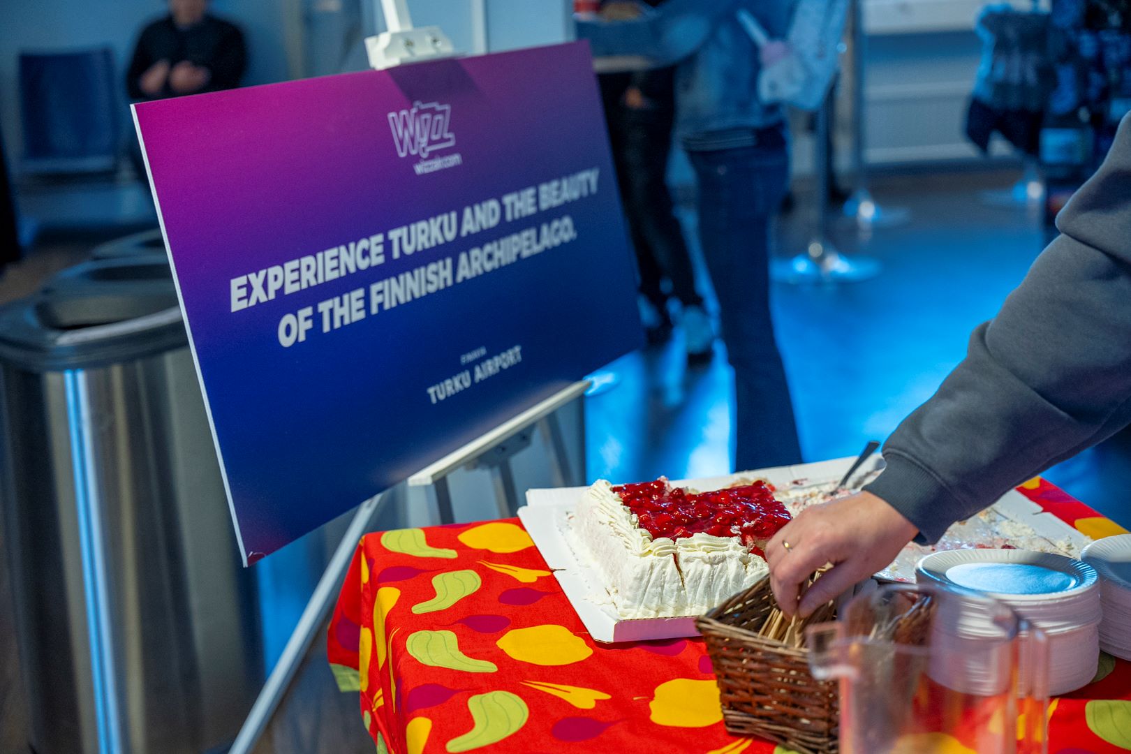 Matkustajillekin tarjottiin täytekakkua uuden lentoreitin avajaisten kunniaksi. Kuva: Visit Turku Archipelago