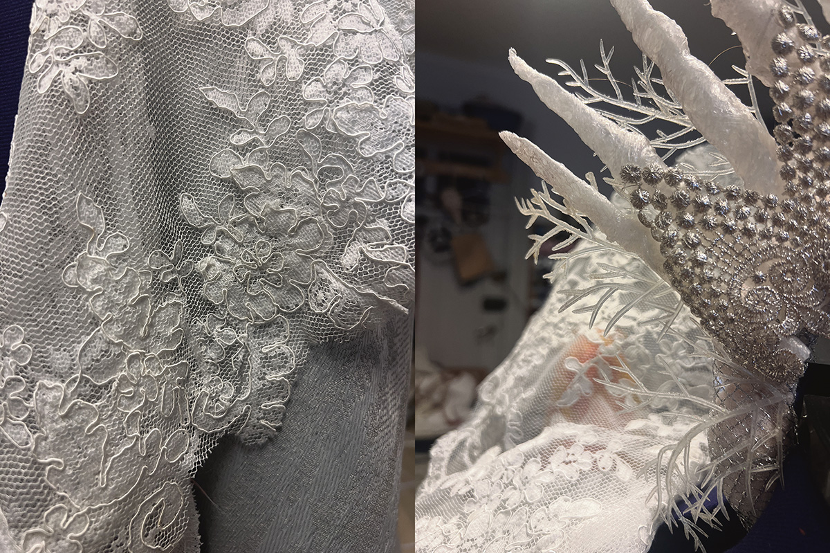 – Ensimmäinen haaste on se, että Lumikuningattaren esittäjä on joka vuosi eri ihminen, joten puvun tulee muuntautua kaikenkokoisille vartaloille sopivaksi, Haapasalo kertoo.