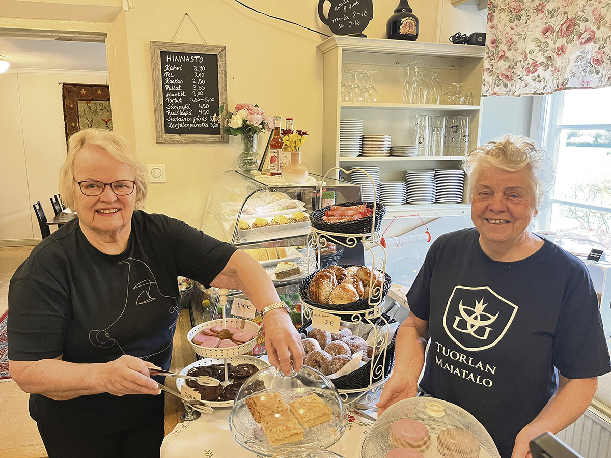 Tuorlan Majatalon lisätyövoimana toimii eläköityneitä ravintola-alan ammattilaisia, muun muassa Heli Kavalto ja Pirjo Saario. Kuva: Miia Alhanen.