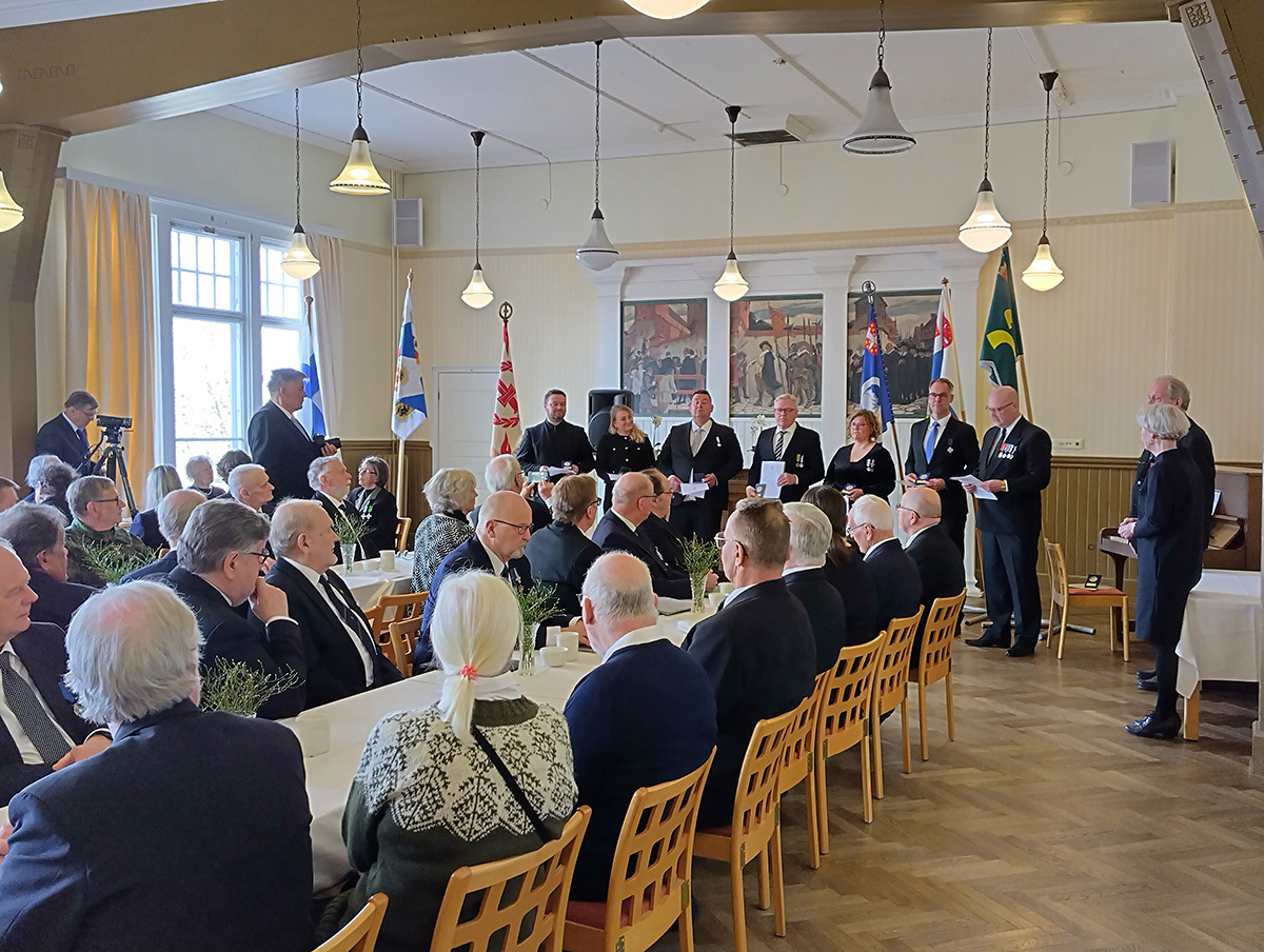 Veteraanipäivän juhlallisuudet jatkuivat kansanopiston tiloissa ohjelmallisena kahvitilaisuutena, jossa kaupungin tervehdyksen toi kaupunginjohtaja Nina-Mari Turpela ja seurakunnan tervehdyksen kirkkoherra Miika Rosendahl.